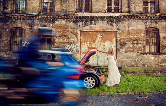 Mr. Krzysztof from Gdansk rented a motorcycle Kawasaki ZX12R and gave his wedding session unique character. The fastest motorcycle in the world 2001 took part in the pictures of the Bride and Groom together with the stylish Mini Cooper.